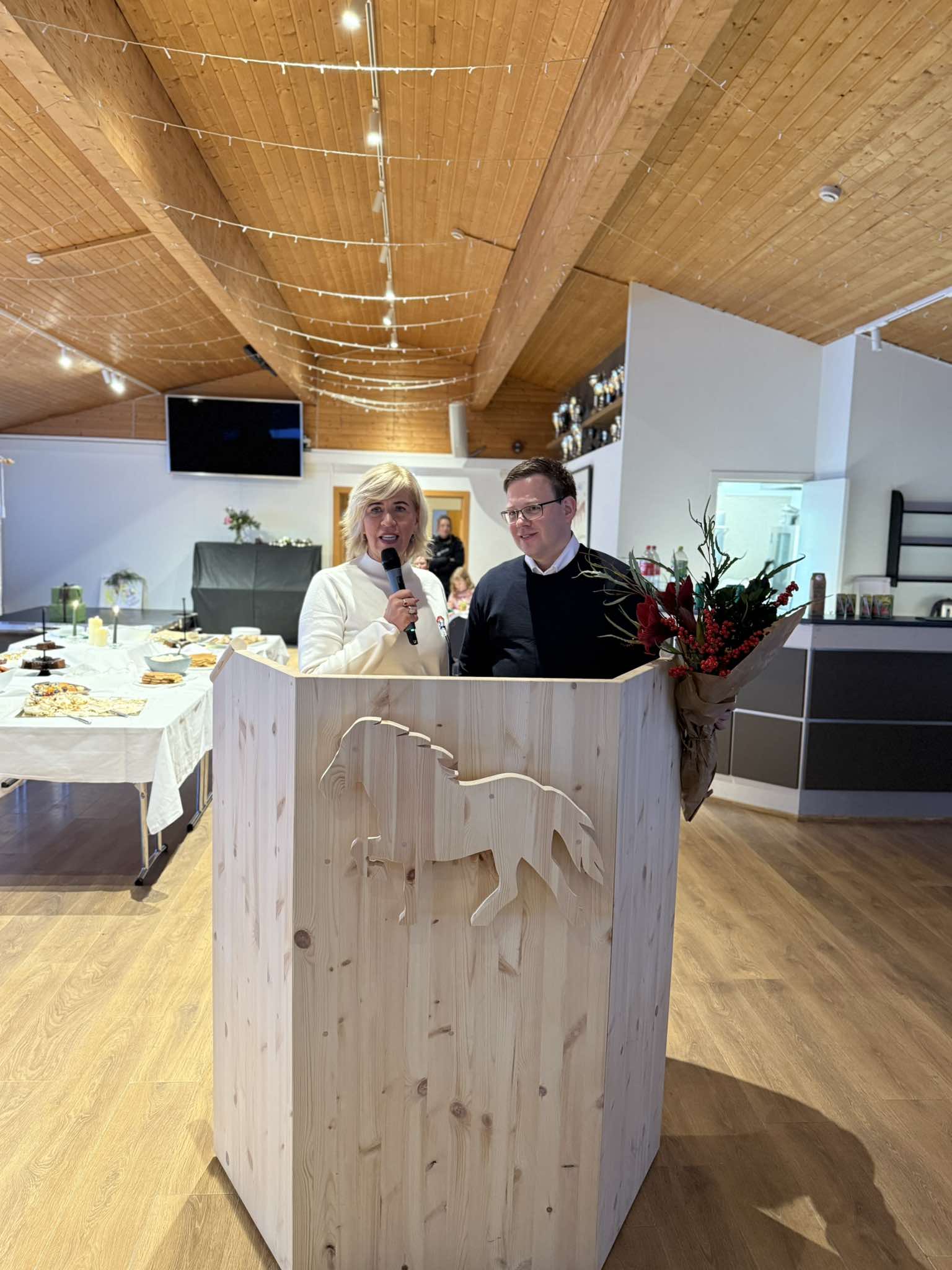 Formaður LH og varaformaður stýrðu afmælissöng og færðu félaginu blóm.