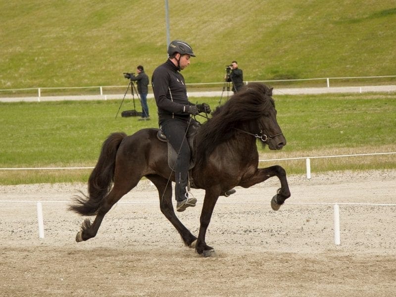Viðar Ingólfsson er með flest hross á yfirlitinu á morgun hér situr hann Völsung frá Skeiðvöllum á kynbótasýningu í Spretti