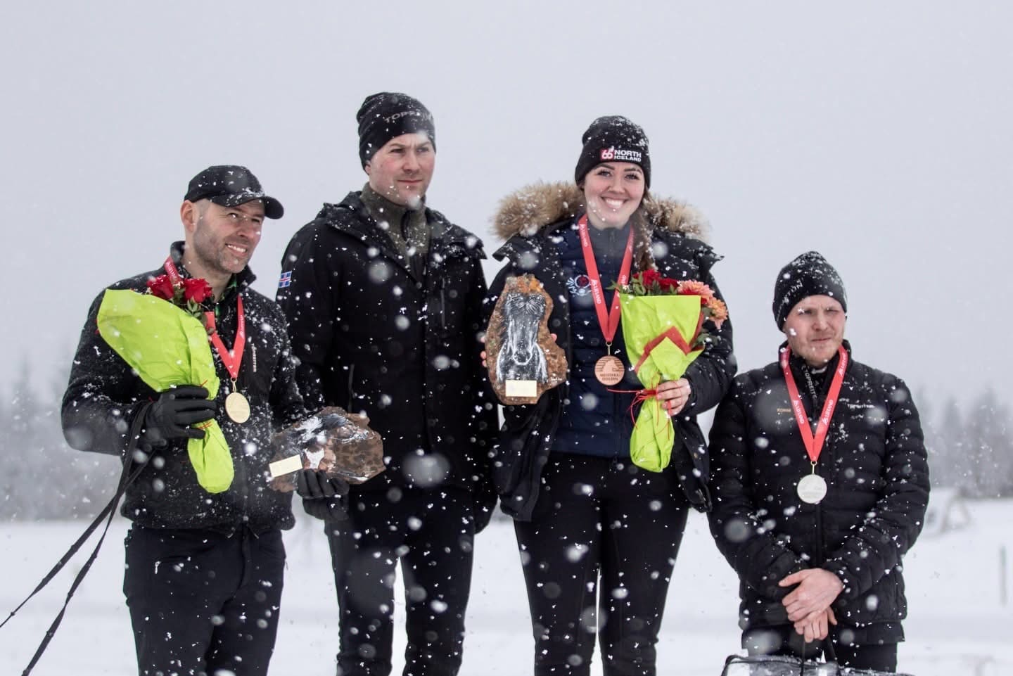 Liðsmenn TopReiter/Sumarliðabæjar kampakátir með frábæran árangur dagsins. F.v. Árni Björn Pálsson, Teitur Árnason, Guðmunda Ellen Sigurðardóttir og Konráð Valur Sveinsson.