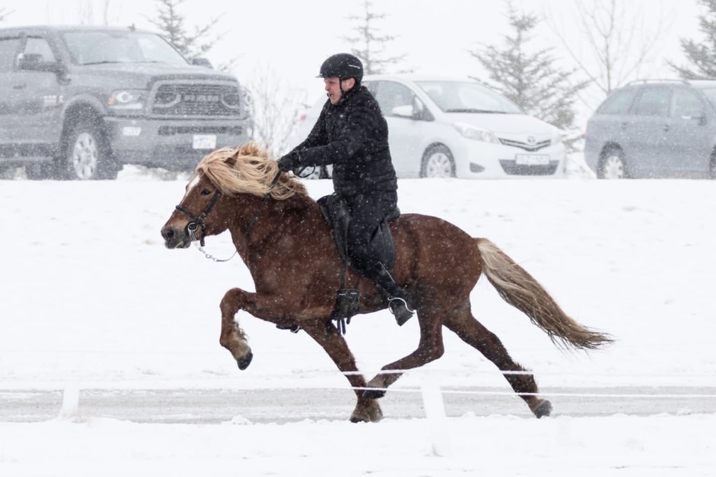 Það er ekki hægt að segja að það hafi viðrað vel til skeiðkappreiða á Brávöllum á Selfossi í dag en þar fór fram skeiðmót Meistaradeildar Líflands í hestaíþróttum. Veðrið slapp ágætlega þangað til að byrja að snjóa í seinni skeiðsprettinum í gæðingaskeiðinu og var veðrið orðið hrikalegt í lok kappreiðanna.
