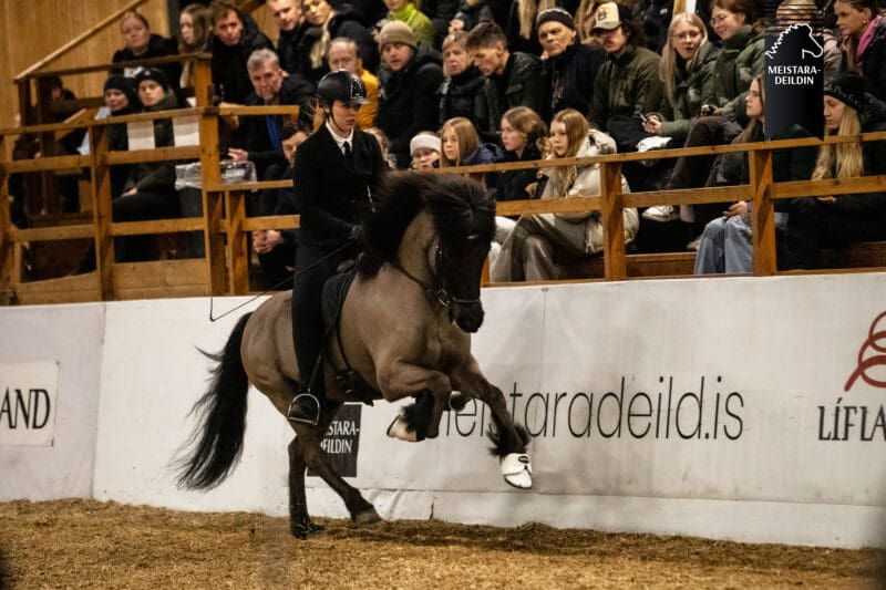 Aðspurð um áskoranir vetrarins nefnir hún aðstæðurnar og tímasetninguna. „Helsta áskorunin er held ég að koma fram og keppa á þessum árstíma,“ segir hún en lætur það ekki á sig fá. Eftir góða byrjun í fjórgangi er stefnan sett áfram upp á við: „Að sjálfsögðu vill maður alltaf meira og gera betur! En ég var ánægð með hestinn, sérstaklega í úrslitunum og þá er mínu markmiði náð.“