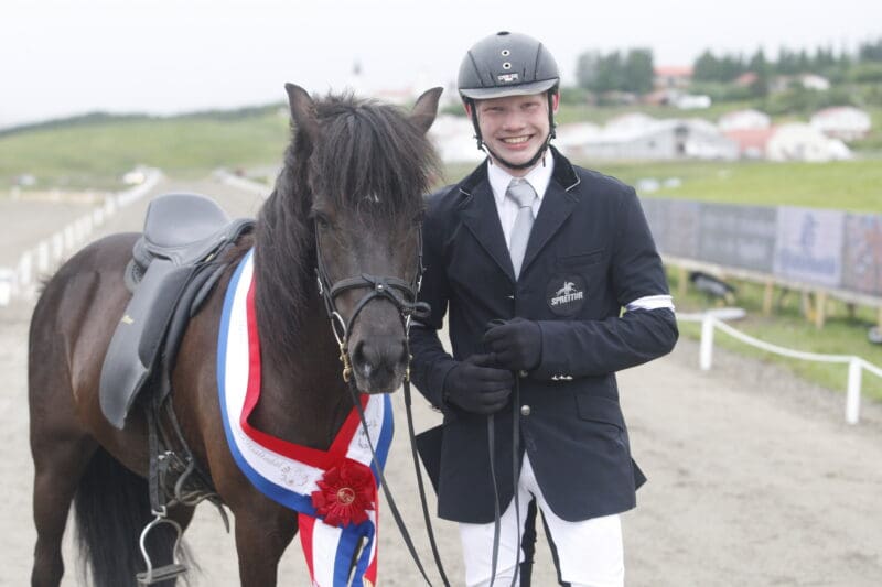 Hafþór Heiðar kampakátur með sigur í unglingaflokki á LM2016. Ljósmynd: Eiðfaxi