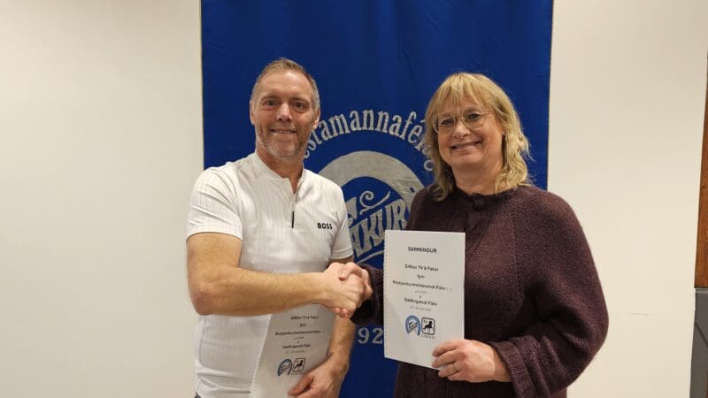 Forsvarsmenn EiðfaxaTV og hestamannafélagsins Fáks undirrituðu í gær samning um beinar útsendingar frá Reykjavíkurmeistaramóti Fáks og gæðinga- og úrtökumóti Fáks.