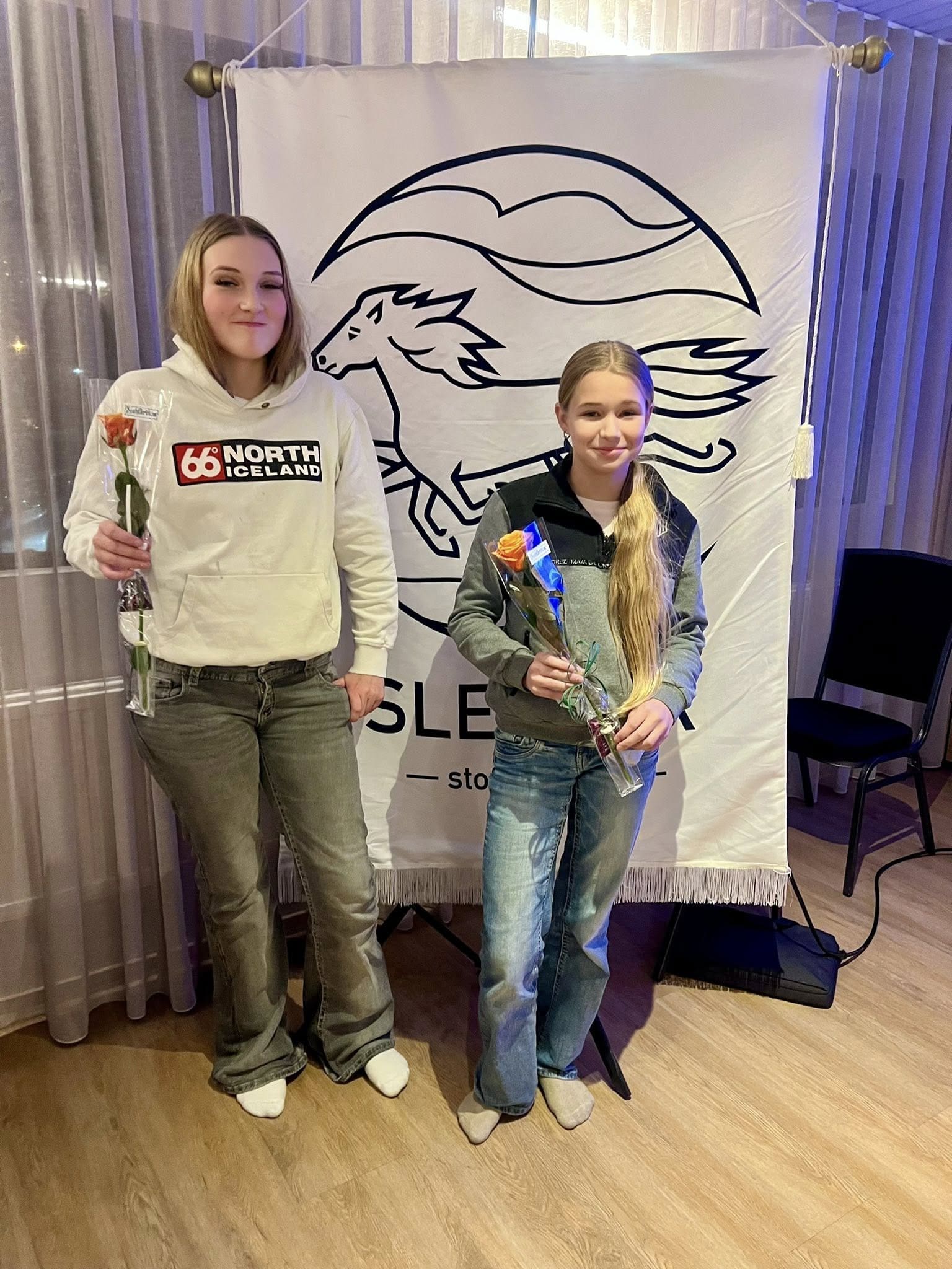 Júlía Mjöll og Kamilla Nótt fengu viðurkenningu fyrir knapamerki 1