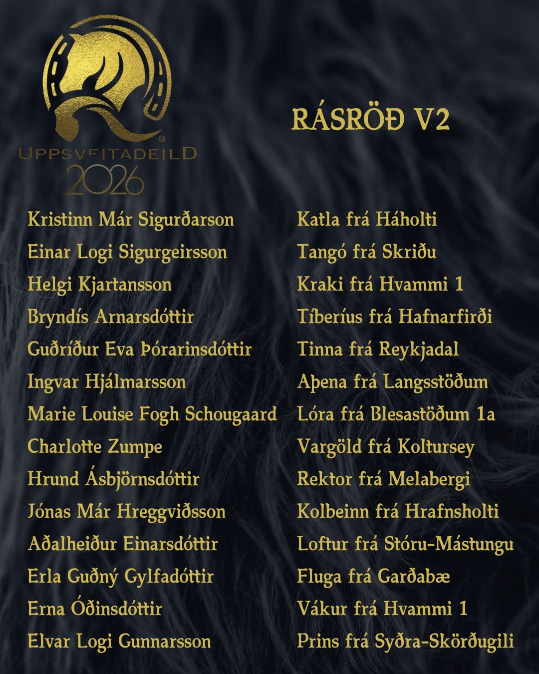 Húsið opnar klukkan 18:30 og keppni hefst 19:00 en keppt er bæði í flokki atvinnu- og áhugamanna. Byrjað er á forkeppni í fjórgangi áhugamanna (V2) og í kjölfarið forkeppni atvinnumanna (V1).