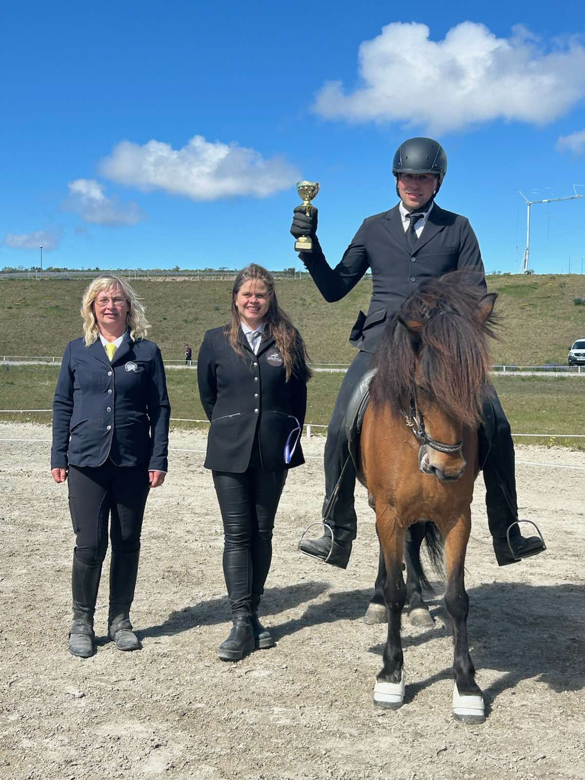 F.v. Hlíf Sturludóttir formaður Fáks, Jónína Björk Vilhjálmsdóttir formaður Spretts og Sveinbjörn Bragason á Gæfu frá Flagbjarnarholti sigurvegari í A-flokki gæðinga