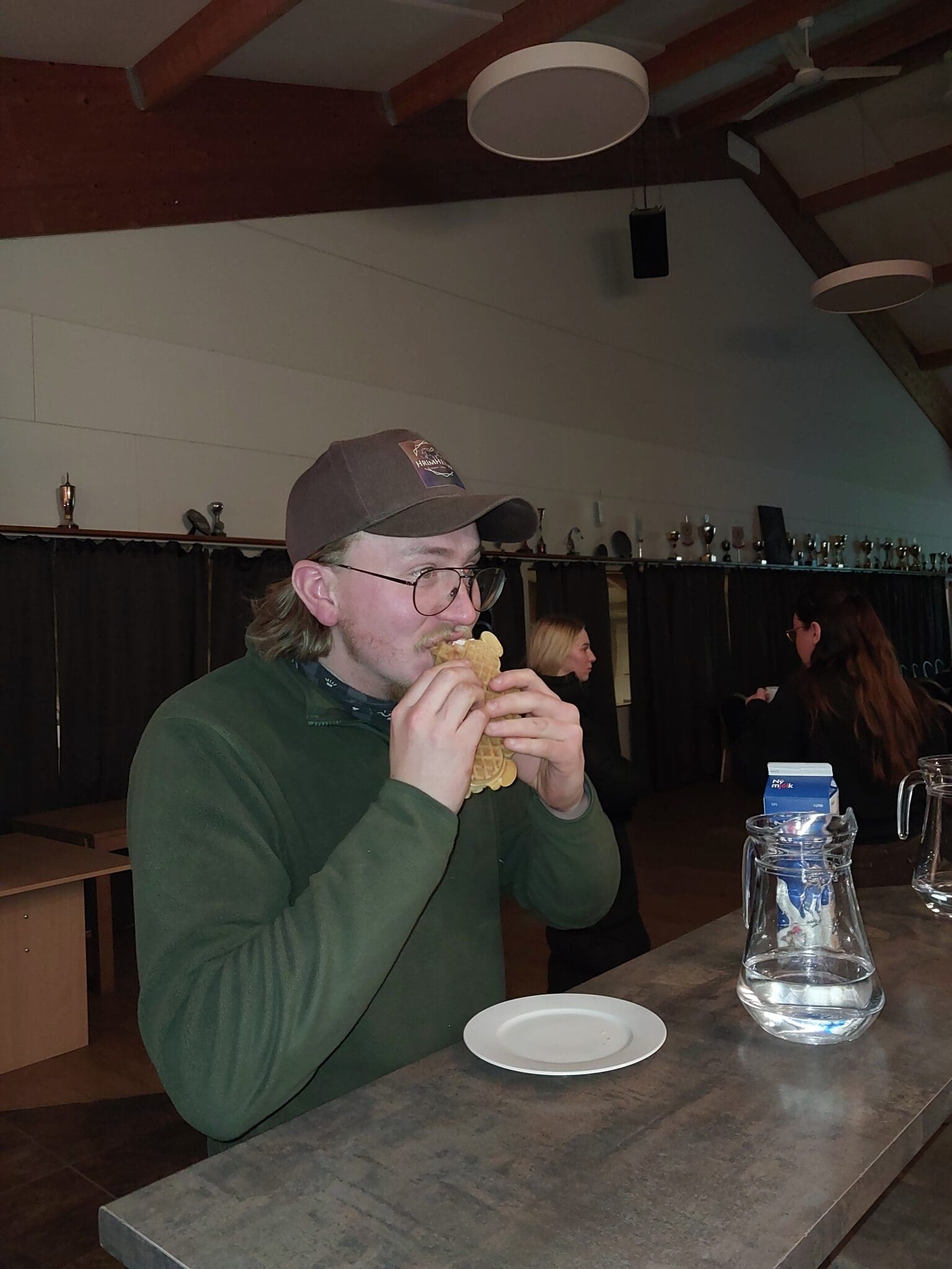 Svanur Berg Jóhannsson gæðir sér á vöfflu